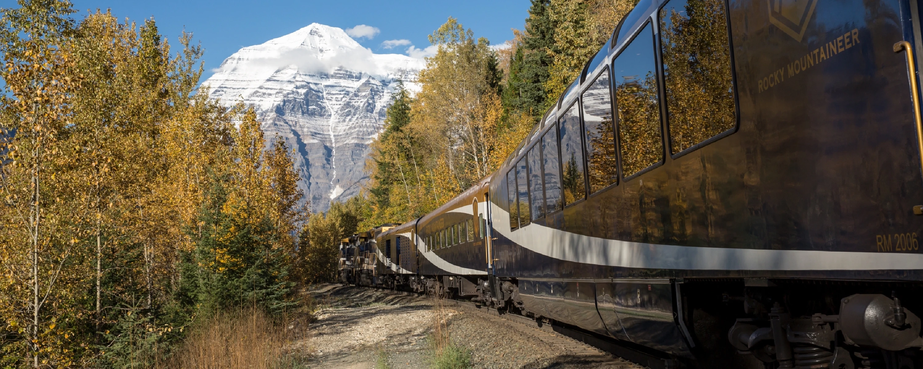 La majestuosidad de las Montañas Rocosas se encuentra con la comodidad de un viaje en tren de lujo.