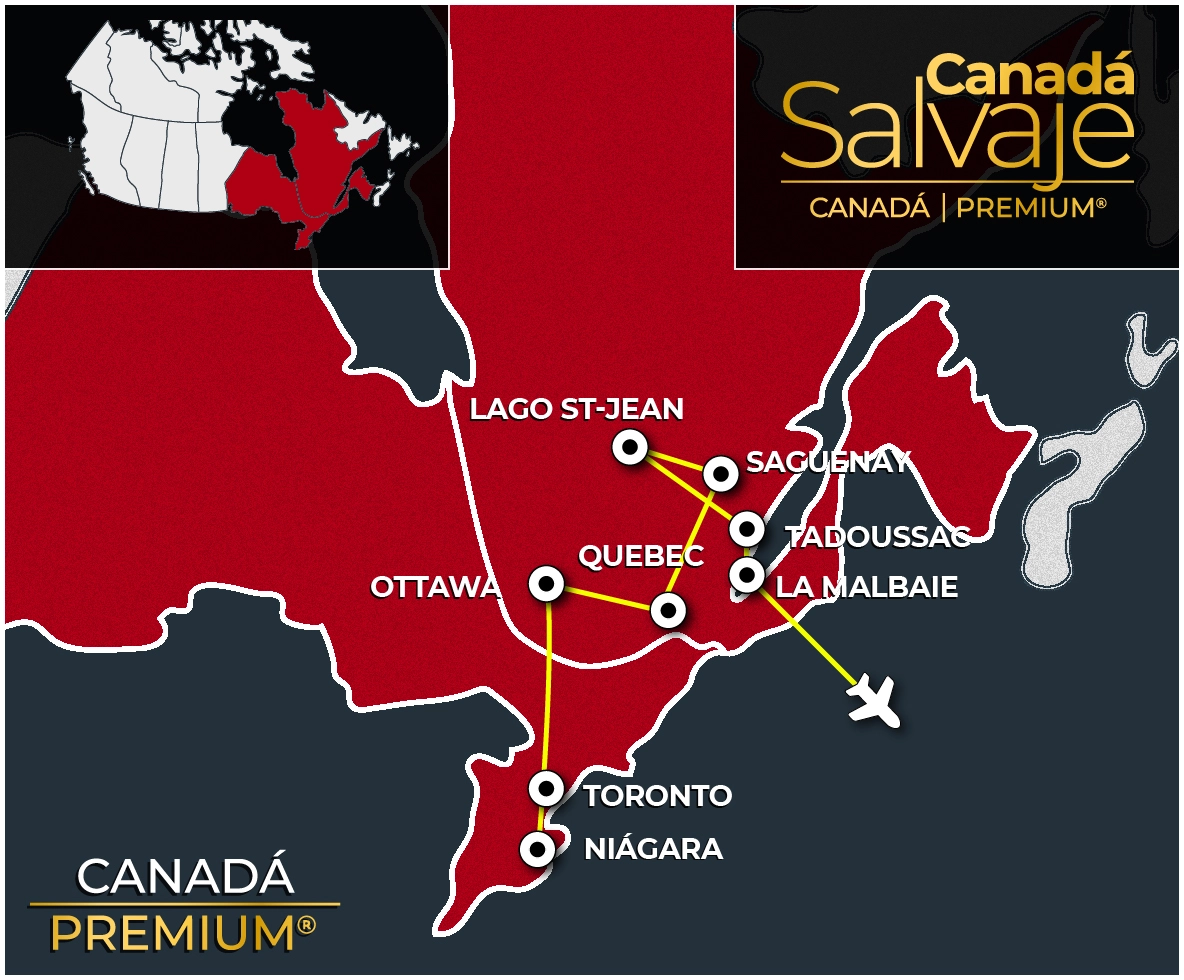 En 1000 islas: en caso de no estar disponible se reemplazará por el museo de la civilización en Quebec, iniciación a la canoa rabaska, paseo de interpretación en el bosque, observación de los osos, visita al pueblo fantasma Val Jalbert, visita al zoológico y reserva faunística de St Felicien, safari observación ballenas, Canyon Ste Anne, cataratas Montmorency, visita guiada Village Histórico Huron.