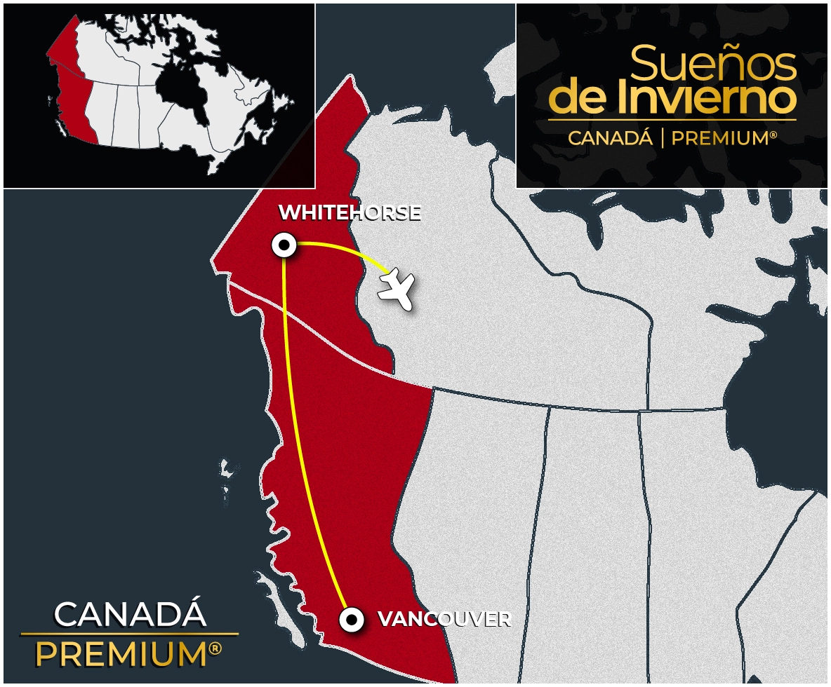 Vuelo opcional Vancouver-Whitehorse-Vancouver: con Air North $400 CAD NETOS p/p aprox. Precio sujeto a disponibilidad en la categoría cotizada, incluye 2 maletas. Los precios, plazas de avión y clases de reserva están sujetas a disponibilidad en el momento de realizar la emisión. Una vez emitidos los vuelos habrá un cargo de $100 cad por persona por cambio o cancelación de los mismos. En caso de requerir asientos el coste es desde 20$ por persona y trayecto.