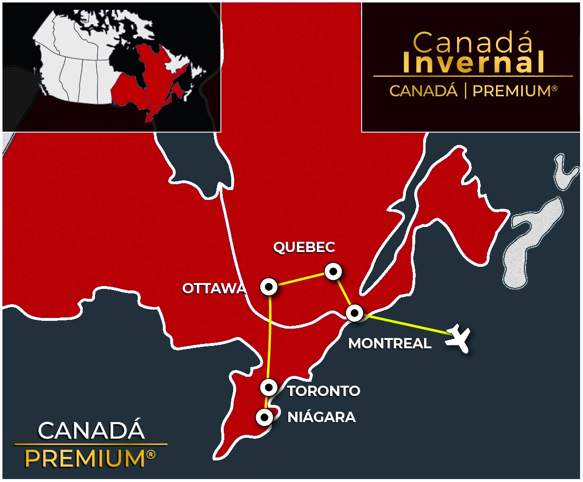 Desayuno. Esta mañana nos dirigimos hacia Montreal, ciudad que se ha hecho un nombre en el medio de la moda y conocida por su fina gastronomía y vida nocturna. Al llegar, Iniciaremos la visita de esta vibrante ciudad, segunda mayor urbe de lengua francesa en el mundo: el Complejo Olímpico (parada fotográfica), la calle St-Laurent, la principal de la ciudad con sus muchos restaurantes con platos del mundo entero, el barrio de la Milla Cuadrada de Oro de Montreal en donde se encuentra hoy la famosa universidad de McGill, el parque del Monte Real, favorito de los residentes de la ciudad que llevan a sus niños a deslizarse por las laderas o patinar sobre hielo en el Lago de los Castores, haremos una parada fotográfica en el mirador. En camino al Viejo Montreal veremos el barrio Le Plateau Mont Royal que es hoy uno de los más populares. La Plaza de Armas, testigo de la evolución arquitectónica del lugar con sus edificios de diferentes épocas, y donde se encuentra la Basílica de Notre Dame de Montreal. La Plaza Cartier y el ayuntamiento de Montreal. Resto del día libre.