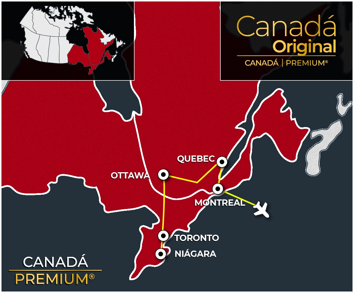 Desayuno. Salida en dirección a Montreal. Al llegar, iniciaremos la visita de esta vibrante ciudad, segunda mayor ciudad de lengua francesa en el mundo: el estadio Olímpico (parada fotográfica), la calle St-Laurent, el barrio de la Milla Cuadrada de Oro de Montreal en donde se encuentra hoy la famosa universidad de McGill, el parque del Monte Real en donde haremos una parada en el mirador de los enamorados. En camino al Viejo Montreal veremos el barrio Le Plateau Mont Royal, la plaza de Armas, donde se encuentra la Basílica de Notre Dame de Montreal. La Plaza Cartier y el Ayuntamiento de Montreal. Resto del día libre.